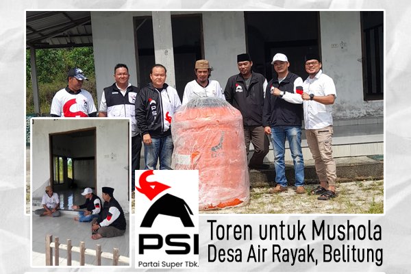 Inisiasi bantuan ini bermula dari laporan salah satu kader PSI Belitung, Teguh Trinanda, yang menginformasikan kebutuhan mendesak di rumah ibadah tersebut. Menanggapi laporan itu, jajaran pengurus PSI Belitung bergerak cepat dengan segera melakukan pengadaan unit tangki air dan langsung turun ke lokasi. Penyerahan bantuan dilakukan secara oleh Sekretaris DPD PSI Belitung, Suyanto (Anyie), bersama Ketua Bapilu, Julian Aditya. Aksi sosial ini juga didampingi oleh Ketua DPC PSI Tanjungpandan, Johan; Sekretaris DPC Tanjungpandan, Yento; serta Ketua Ranting PSI Air Rayak, Agus, yang menunjukkan kolaborasi solid antar-tingkatan kepengurusan partai di lapangan.